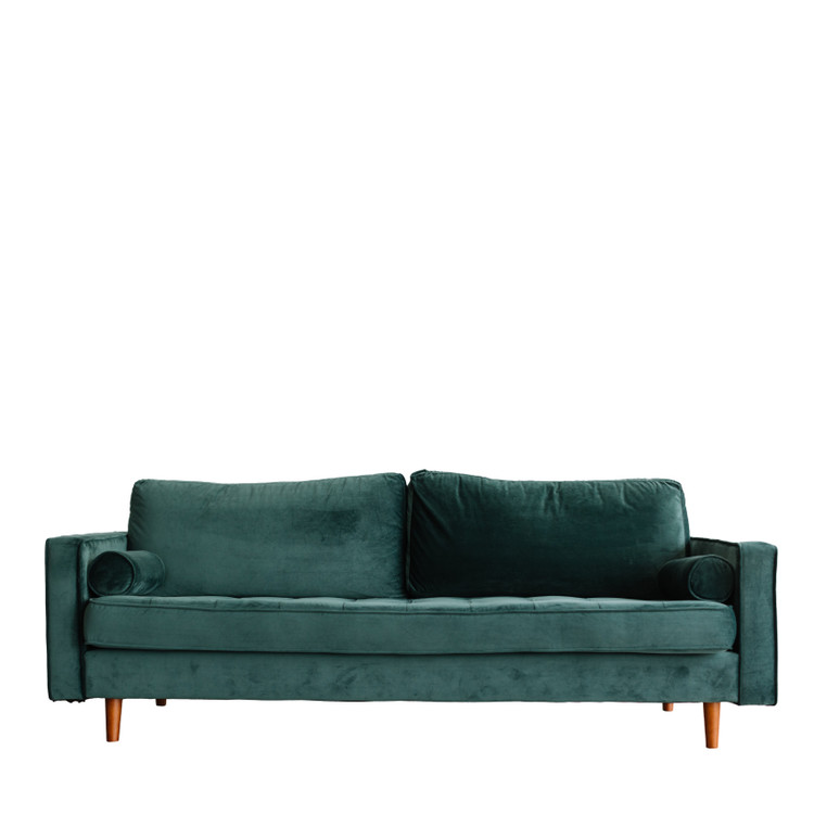 초록색 천으로 제작된 이 쇼파는 공간에 자연의 싱그러움과 활력을 불어넣어줍니다.